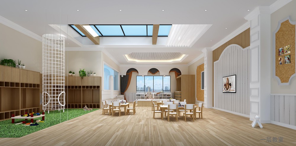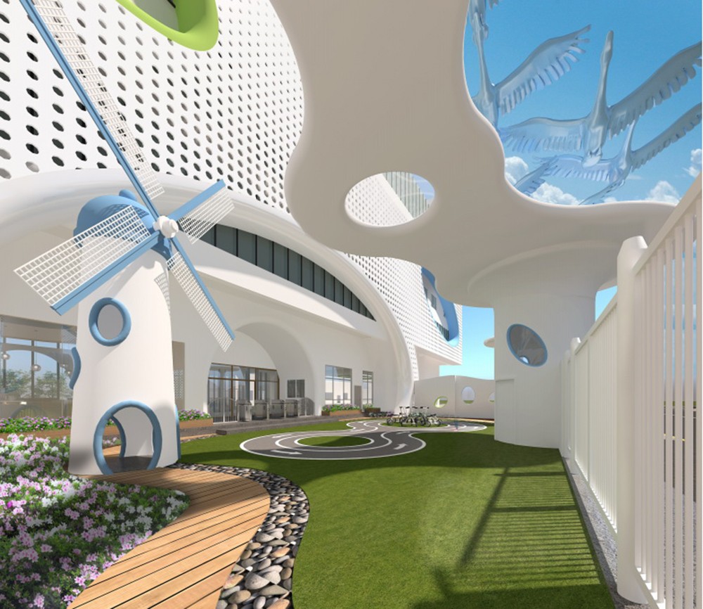 本案設(shè)計師運用豐富的設(shè)計語言與理念,從多個維度對幼兒園進行全方位的立體設(shè)計,溫馨:幼兒園是孩子的第二個家,園舍柔和的色彩、適齡的布置都會減少幼兒入園焦慮,給幼兒以安全、溫馨的滿足感。藝術(shù):富有藝術(shù)的環(huán)境創(chuàng)設(shè),可以培養(yǎng)幼兒欣賞美、感受美、和創(chuàng)造美的能力,并能陶冶幼兒的情操。自主:幼兒園是孩子的天地,是孩子的樂園,是孩子自己的家,幼兒園的環(huán)境創(chuàng)設(shè)應(yīng)體現(xiàn)孩子的自主性。生態(tài):根據(jù)幼兒好奇、好動、好模仿的特點,創(chuàng)造良好的生態(tài)環(huán)境,發(fā)揮境教的功能,有利于幼兒身心健康和諧發(fā)展。建立戲水池、仿沙灘、種植園、草坡、風(fēng)車、水族館、科學(xué)館、動物等,營造鳥語花香、綠色盎然的天然景觀,讓孩子在觀察中發(fā)現(xiàn),在活動中感知,在創(chuàng)造中想象,在動手參與飼養(yǎng)、種植等勞動中懂得保護環(huán)境,愛護大自。