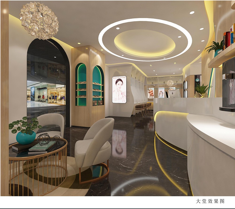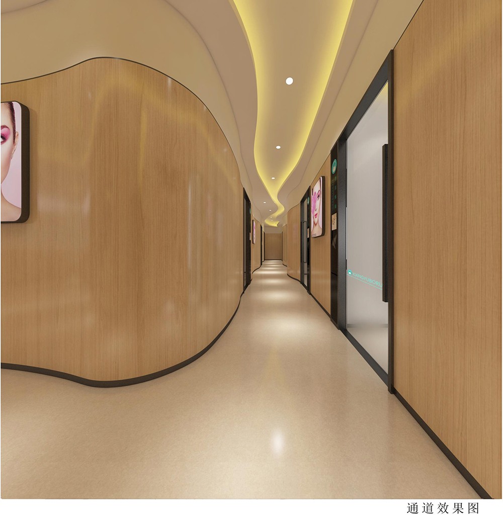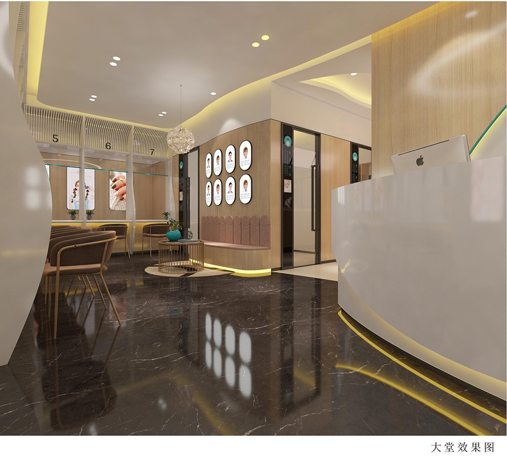 本案采用動感的流線充分體現(xiàn)了柔和之美,同時用異形設計與空間完美的有機結合,充滿藝術效果,通過幕墻木紋線條進行裝飾,讓設計增添幾分親和力,室內的雅致與體面保留了醫(yī)美行業(yè)的精髓所在,細膩流暢的表現(xiàn)手法,表達了企業(yè)的專注與精湛